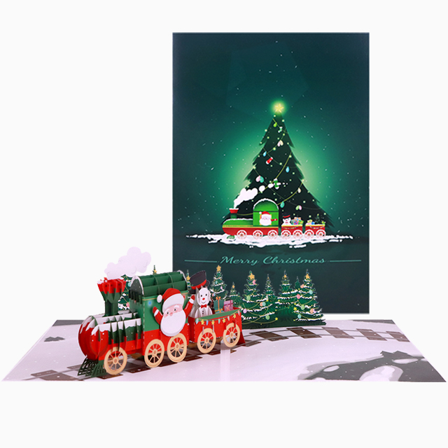 کارت کریسمس سه بعدی با بابانوئل در قطار